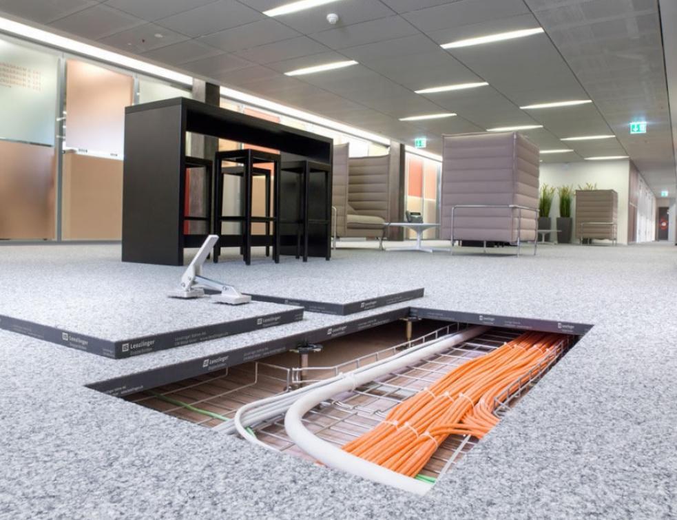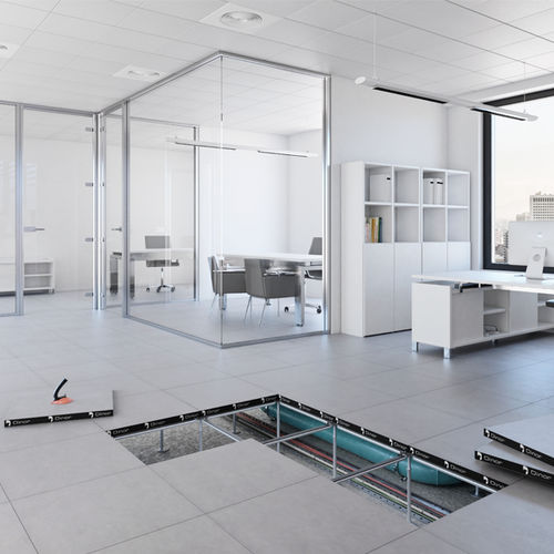 Le plancher sur-élevé ou plancher technique, dissimule dans l’espace vide entre le plancher et le sol (plénum) l’ensemble des câbles (informatique, communication, électricité, …) et réseaux techniques (climatisation, fluides, …) tout en permettant un accès simple et facile pour toute intervention utile.